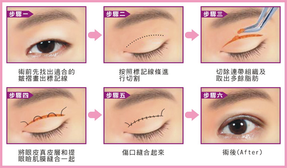 眼皮(40-50分鐘) 眼皮+提眼瞼肌+眼頭(約2.5小時)